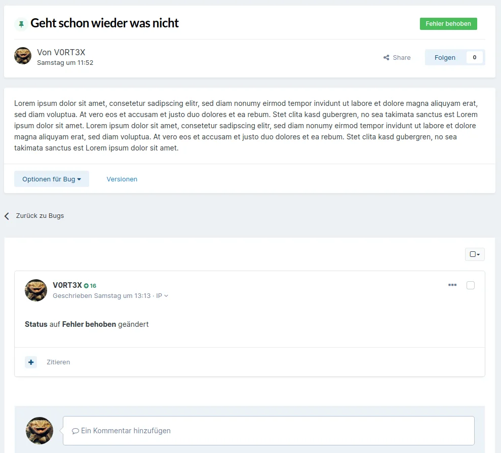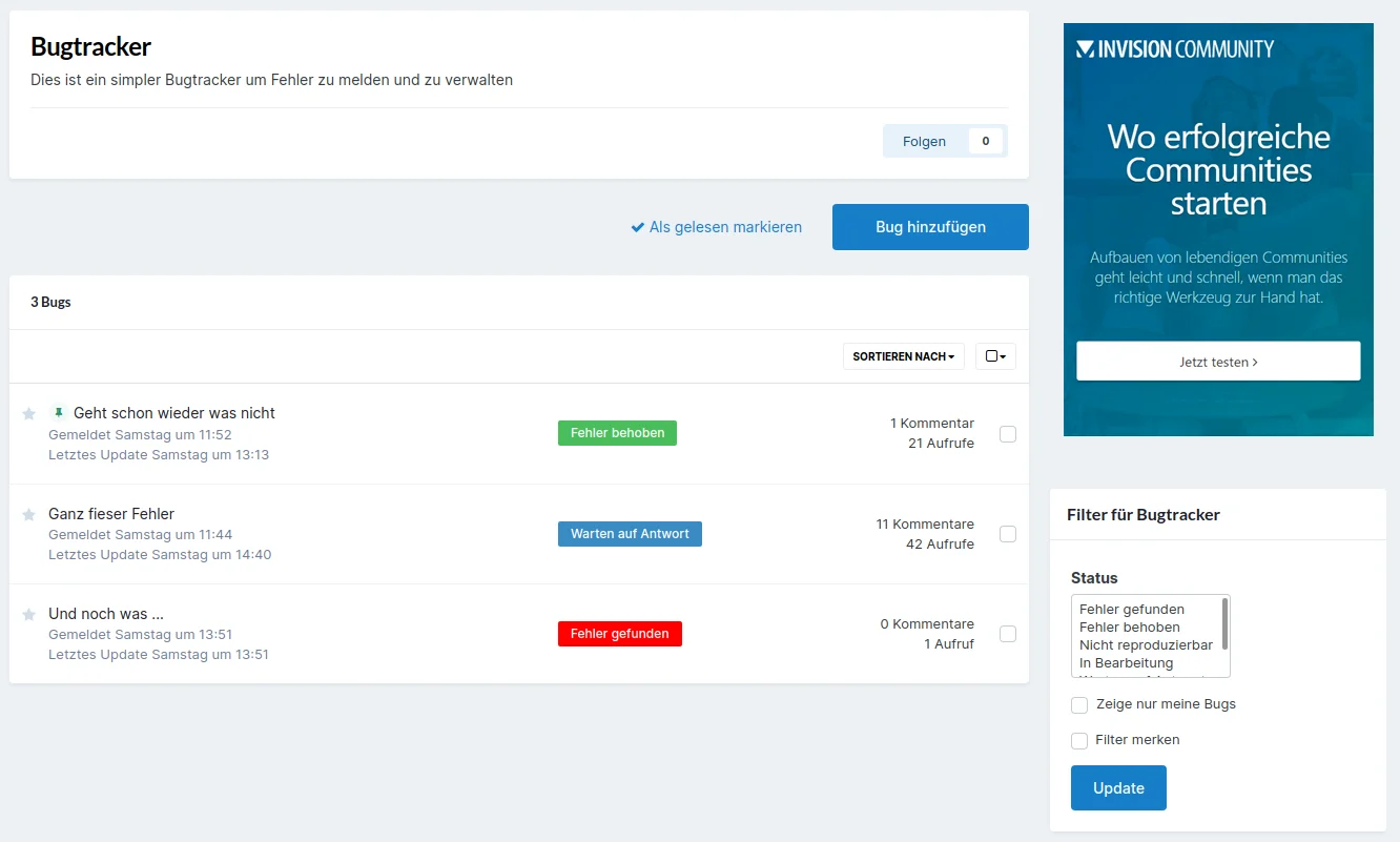 Unser Bugtracker ist ein schlichtes, aber effizientes Tool zur Fehlerverwaltung.
