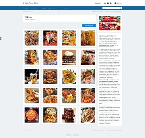 With a little imagination, you can also use this system like a normal image gallery. A thumbnail can be used as usual as a preview for the full image on the article page, or as an album cover for further images.